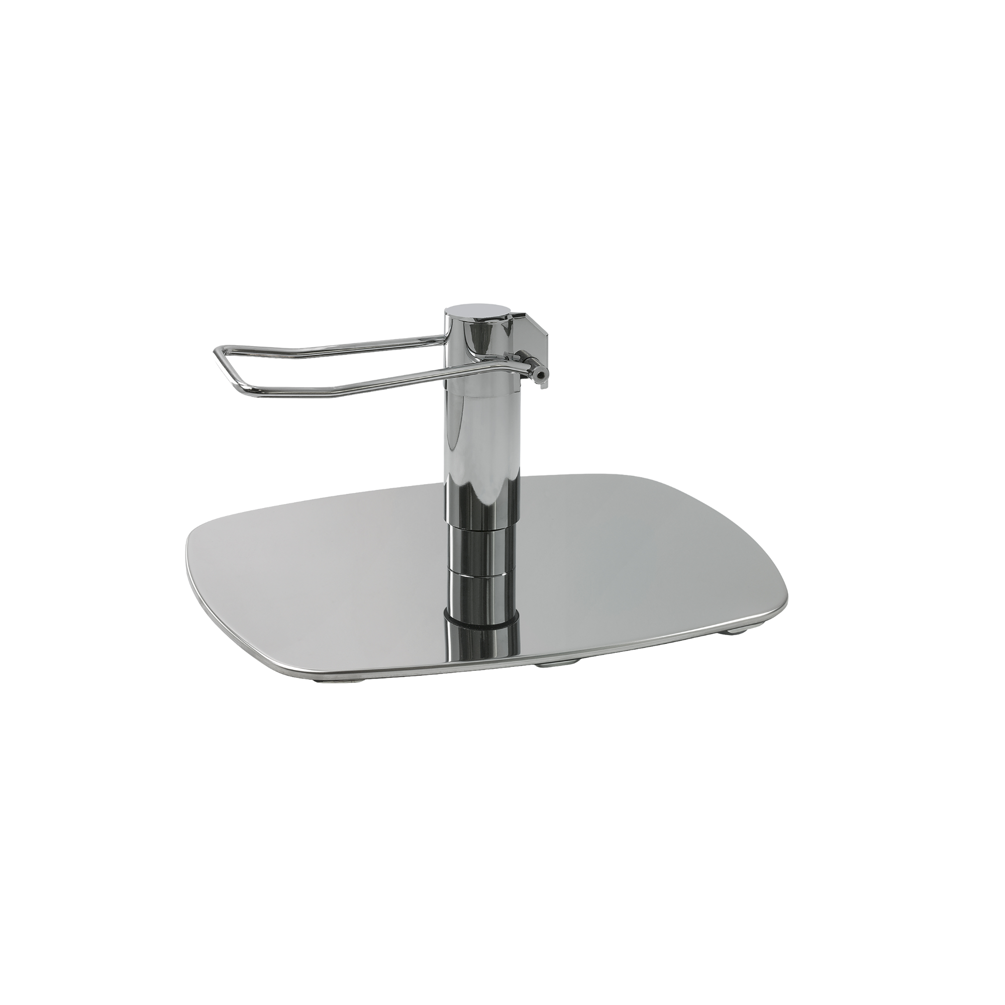 Kvadratna hidraulična baza za frizersku stolicu izrađena od sjajnog čelika s kromiranim podizačem. Kombinira stabilnost, funkcionalnost i moderan dizajn, savršena za profesionalne frizerske salone.