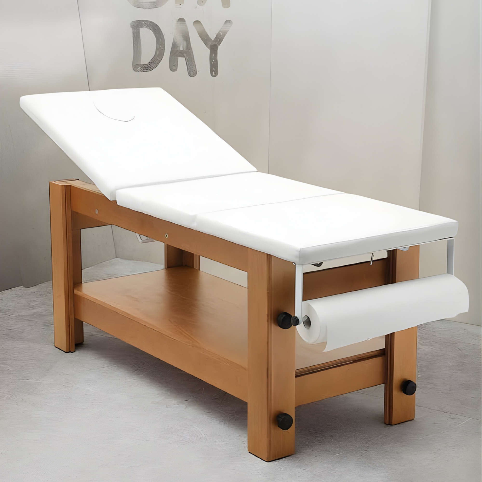 Drveni stol za masažu Popper u toploj akumè nijansi pruža udobnost i stabilnost tijekom svakog tretmana. Zahvaljujući dodatnom podstavljenju i presvlaci od bijelog skai materijala, osigurava mekano i ugodno iskustvo za klijente. Jednostavan, ali elegantan dizajn čini ga savršenim izborom za kozmetičke i wellness salone koji žele spojiti kvalitetu, udobnost i profinjen izgled prostora.