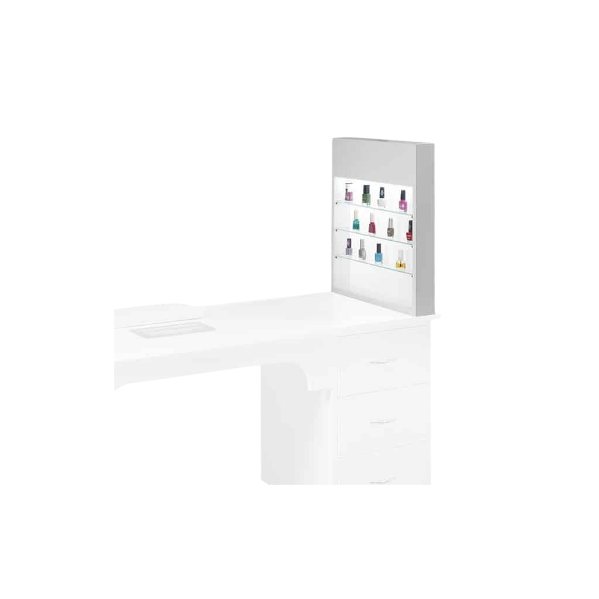 Expo Nails profesionalni je stalak za izlaganje lakova za nokte, dizajniran s naglaskom na eleganciju i suvremen stil. Namijenjen je za organizirano pohranjivanje lakova, gelova i primera za nokte. Zahvaljujući jednostavnim linijama i funkcionalnom dizajnu, unosi red i profinjenost u svaki kozmetički salon. Prozirne police dodatno naglašavaju njegovu estetsku vrijednost, čineći Expo Nails atraktivnim i praktičnim elementom salonskog prostora.