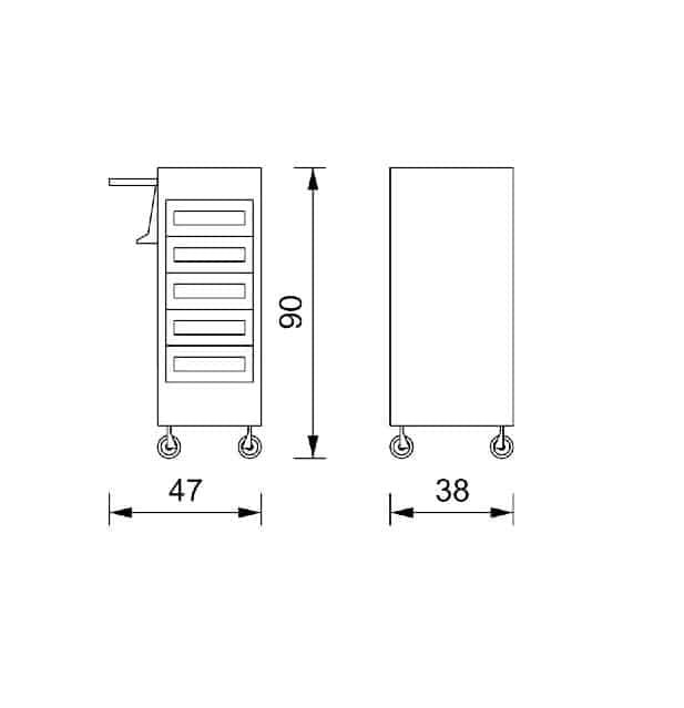 Kolica su opremljena s više ladica za organizirano pohranjivanje pribora te prozirnim kotačićima otpornima na kosu, što ih čini iznimno praktičnima za svakodnevni rad.
