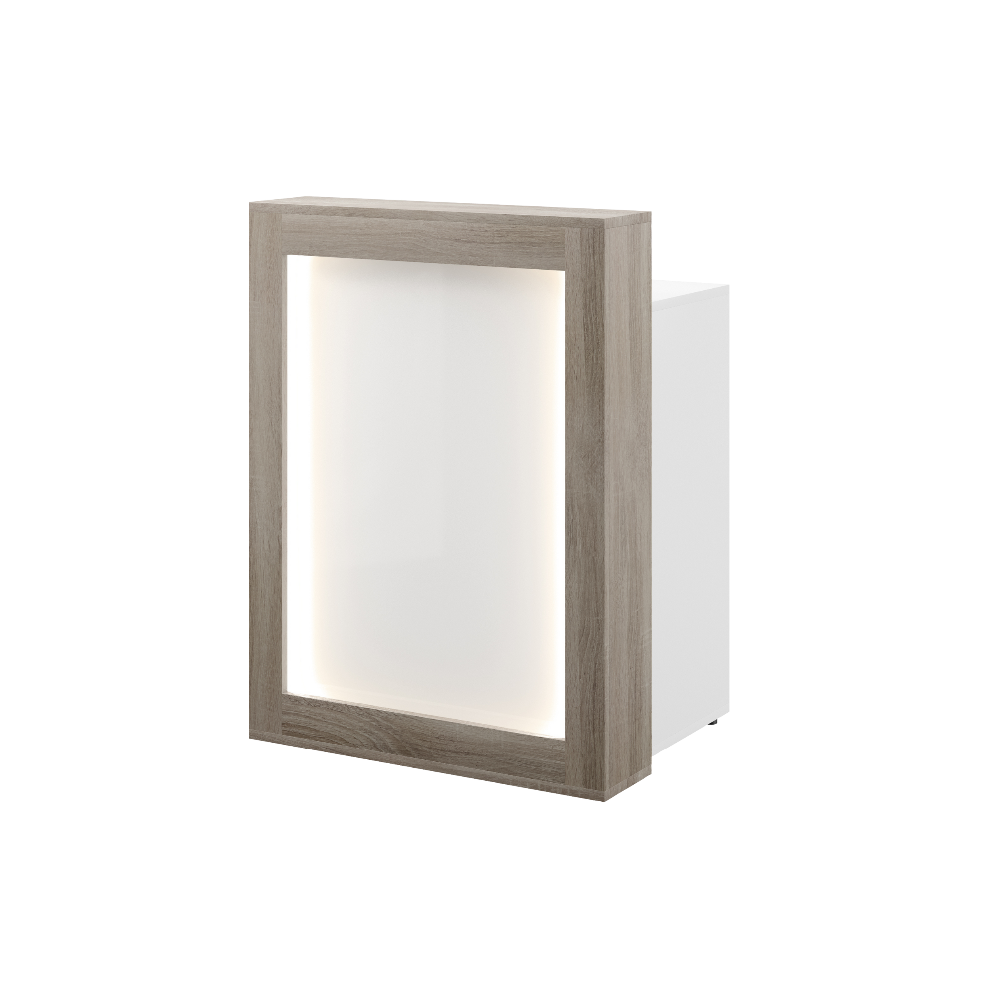 Zahvaljujući jednostavnom i modernom obliku, ovaj model recepcije kompatibilan je s različitim stilovima uređenja frizerskih i beauty salona. LED rasvjeta dodatno pomaže u jasnoj prezentaciji recepcijskog prostora i poboljšava preglednost tijekom rada.