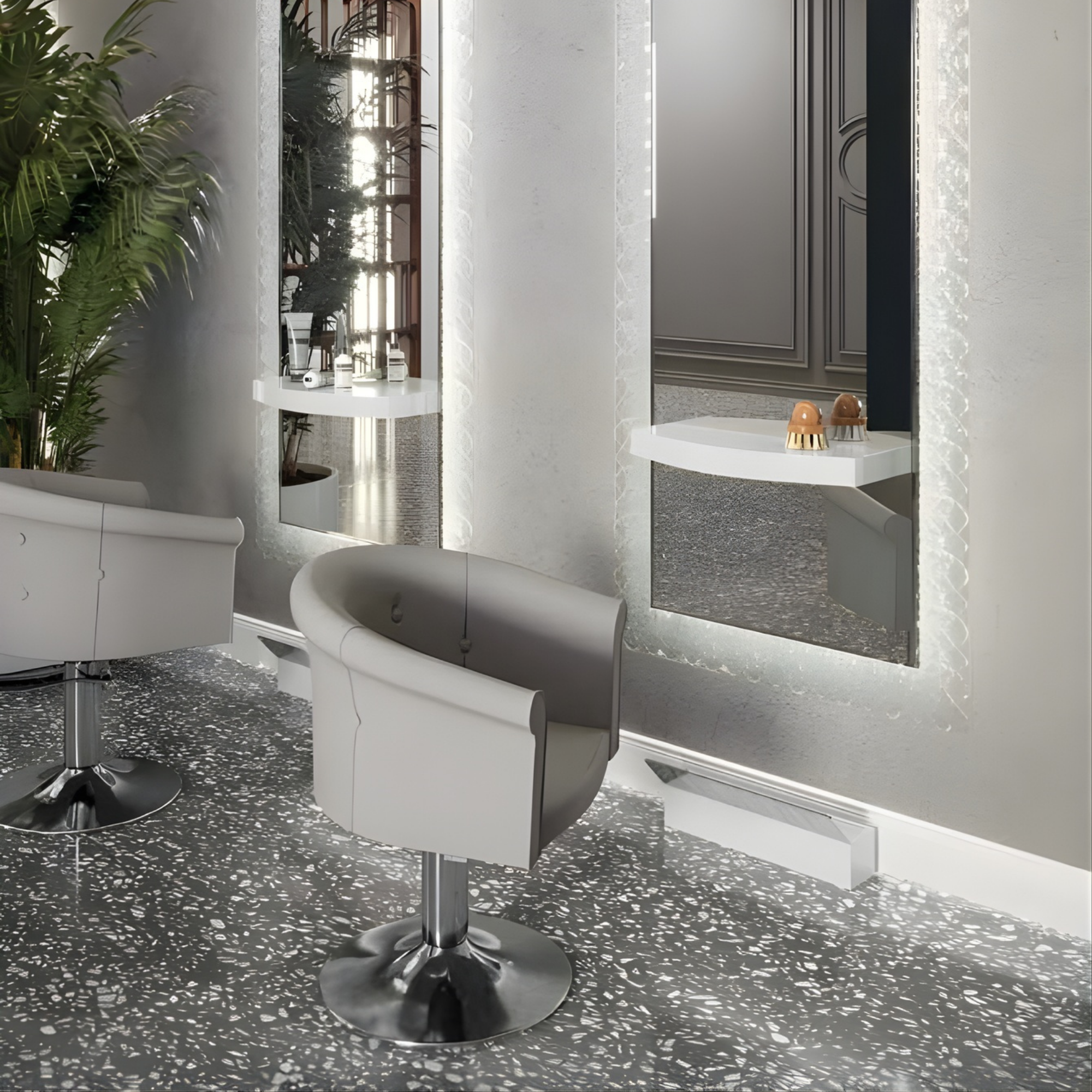 Radna ploha od laminata nudi praktičan prostor za alat i proizvode, a oslonac za noge uključen u dizajn povećava udobnost i ergonomiju. Zahvaljujući skladnom spoju umjetničkog izraza i funkcionalnosti, radno mjesto Epoque 1 predstavlja savršen izbor za salone koji žele unijeti sofisticiran, suvremen i prepoznatljiv karakter u svoj prostor.
