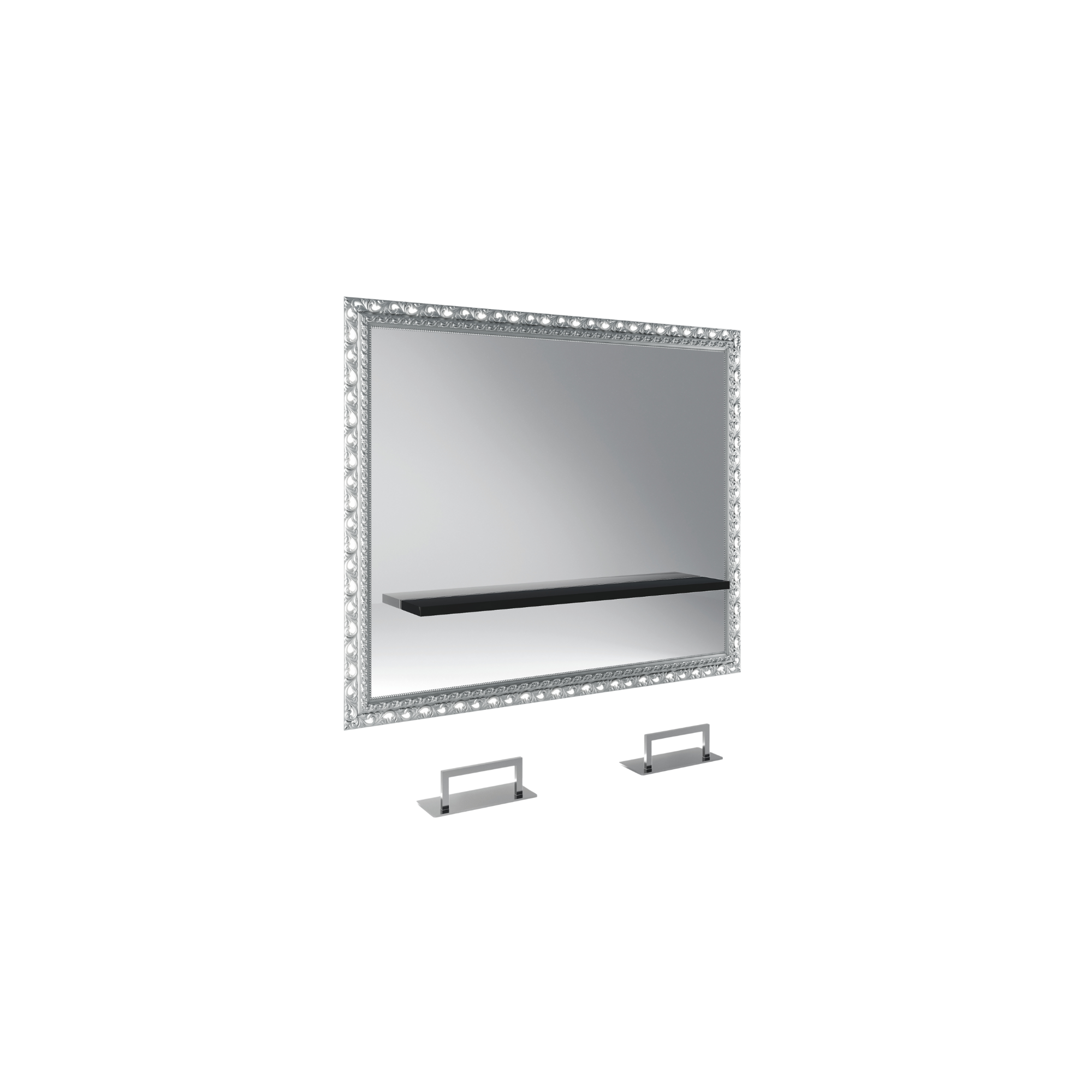 Radno mjesto Queen Plus predstavlja dvostruku zidnu frizersku stanicu koja kombinira klasičnu eleganciju i suvremenu funkcionalnost. Konstrukcija uključuje okvir od aglomeriranog drva u srebrnoj boji, radnu plohu od sjajnog crnog laminata i oslonac za noge od kromiranog čelika.