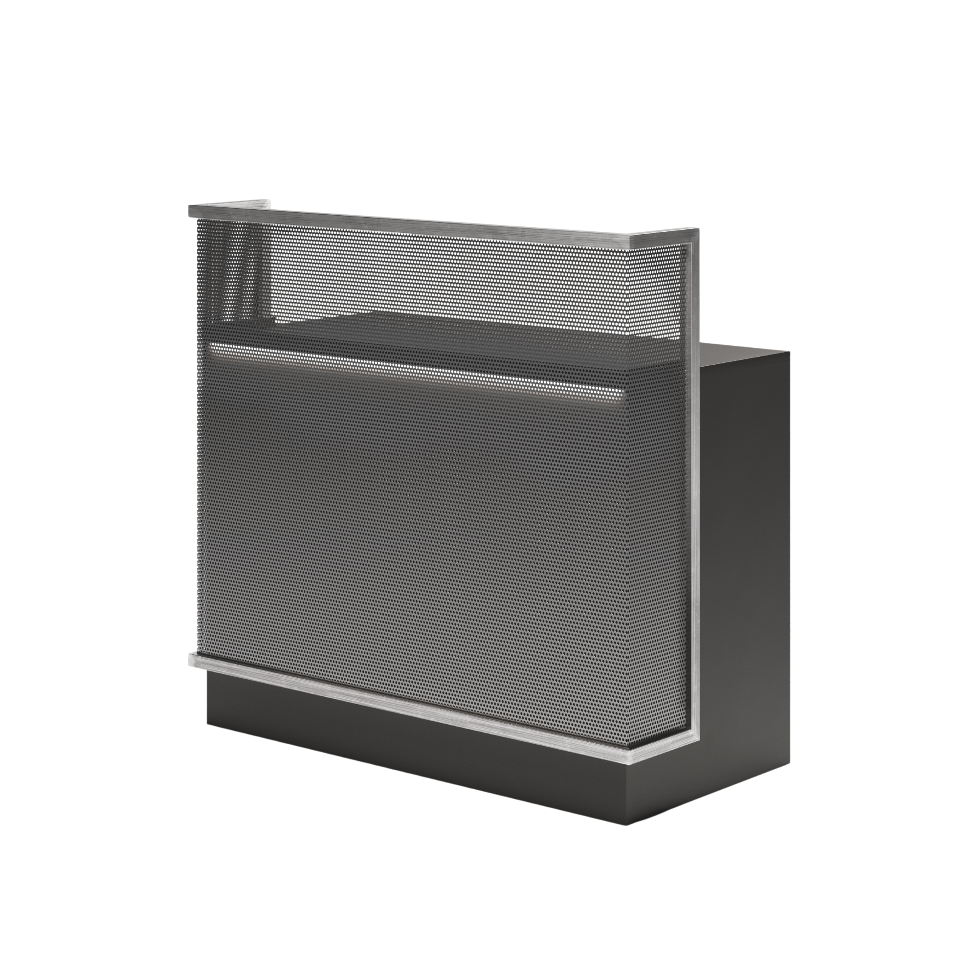Recepcija Iron izdvaja se svojim upečatljivim industrijskim dizajnom i modernim detaljima. Kao dio prepoznatljive Iron kolekcije, izrađena je od čvrste metalne konstrukcije s vidljivom mrežastom strukturom koja stvara elegantan, ali robustan vizualni efekt.